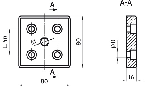 To mount leveling feet, rollers, hooks or similar components; screw joint to the face of the profile –
